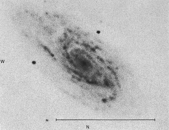 The two main inner arms in the barred spirals (NGC 4304 and NGC 2525) spring from the ends of the bar, as in NGC 1300 (Sandage, 1961, p. 45), and the arms are well defined for about half a revolution beyond their junction with the bar. However, in NGC 4304 especially, the arms beyond this point begin to fragment and decrease in surface brightness. The presence of these faint fossil outer arms becomes a common feature in galaxies of later luminosity class.